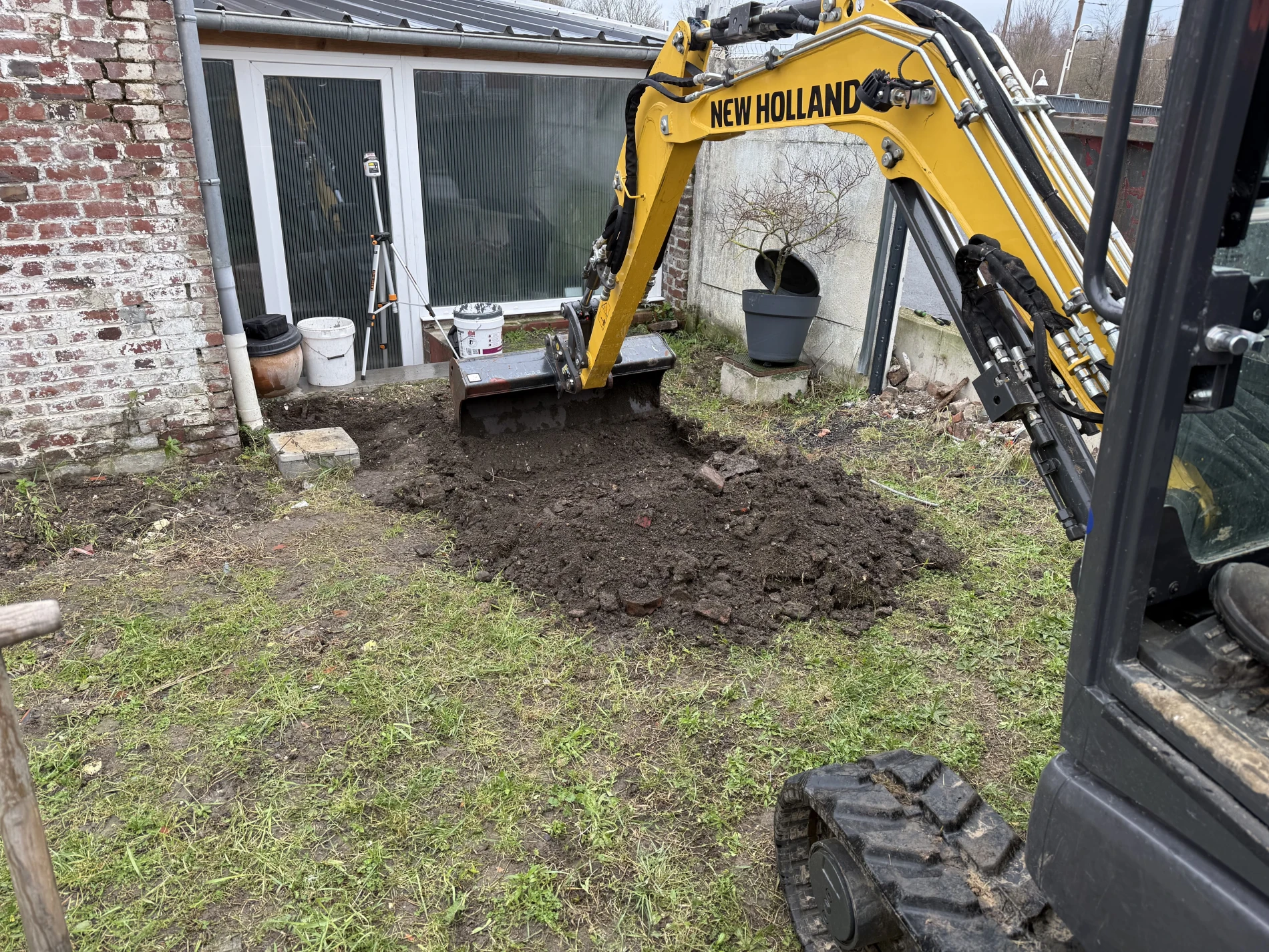 La première étape a consisté en une préparation minutieuse du sol : terrassement, mise à niveau et stabilisation du terrain afin de garantir une base saine et durable pour la future terrasse.