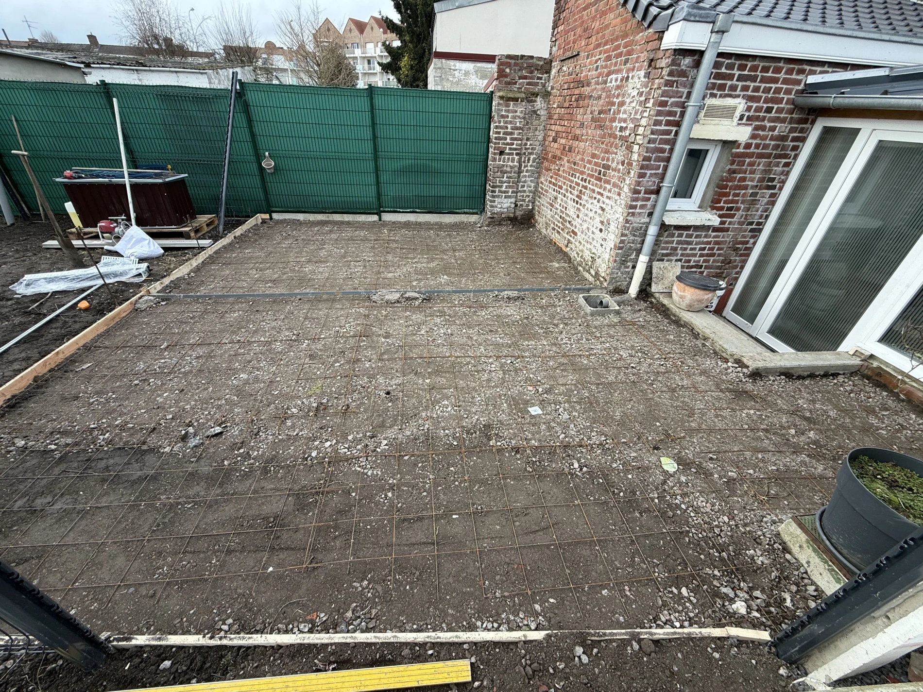 Dans le cadre de ce chantier réalisé à Hénin-Beaumont, nous sommes intervenus pour la création complète d’une terrasse béton, alliant solidité, durabilité et finitions soignées.