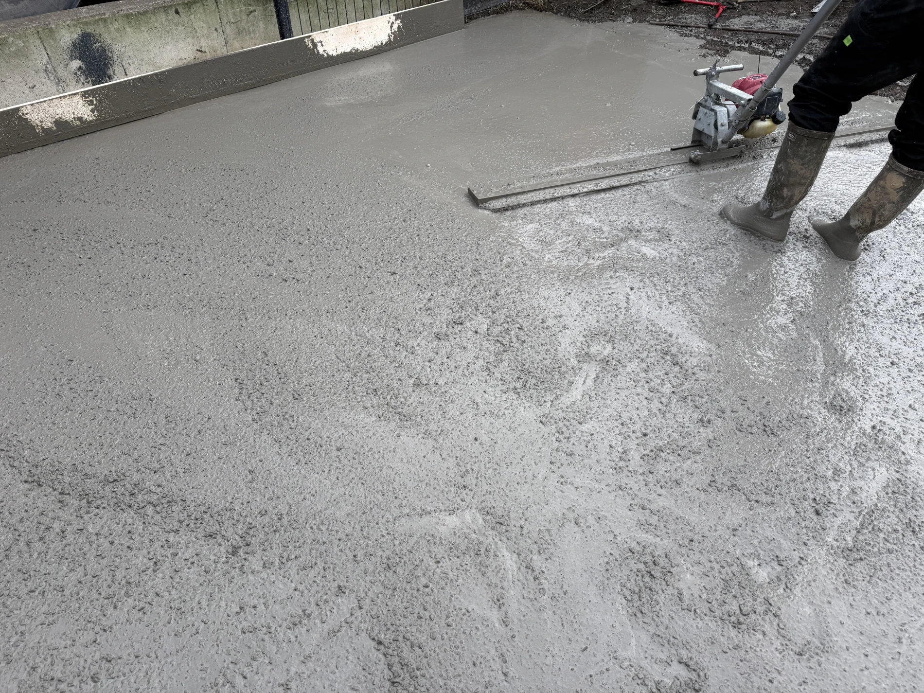 Une fois le terrain prêt, nous avons procédé au coulage du béton, suivi d’un travail précis des finitions, assurant une surface plane, résistante et esthétique, adaptée à un usage extérieur.