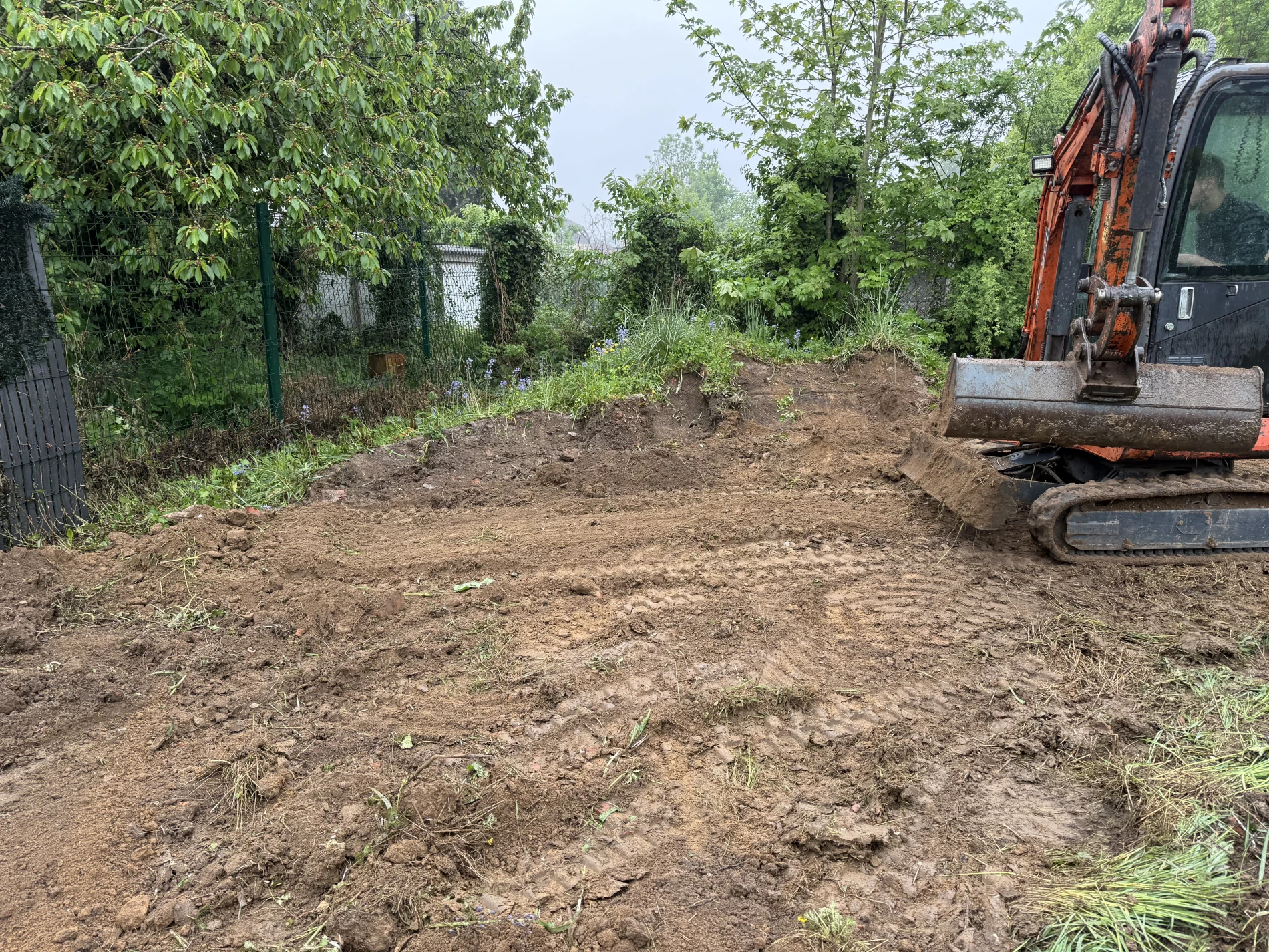 Nous avons procédé au terrassement et au nivellement de la zone afin d’obtenir un sol stable, propre et adapté à l’aménagement extérieur. Cette étape est essentielle pour garantir la durabilité des installations et un rendu soigné.