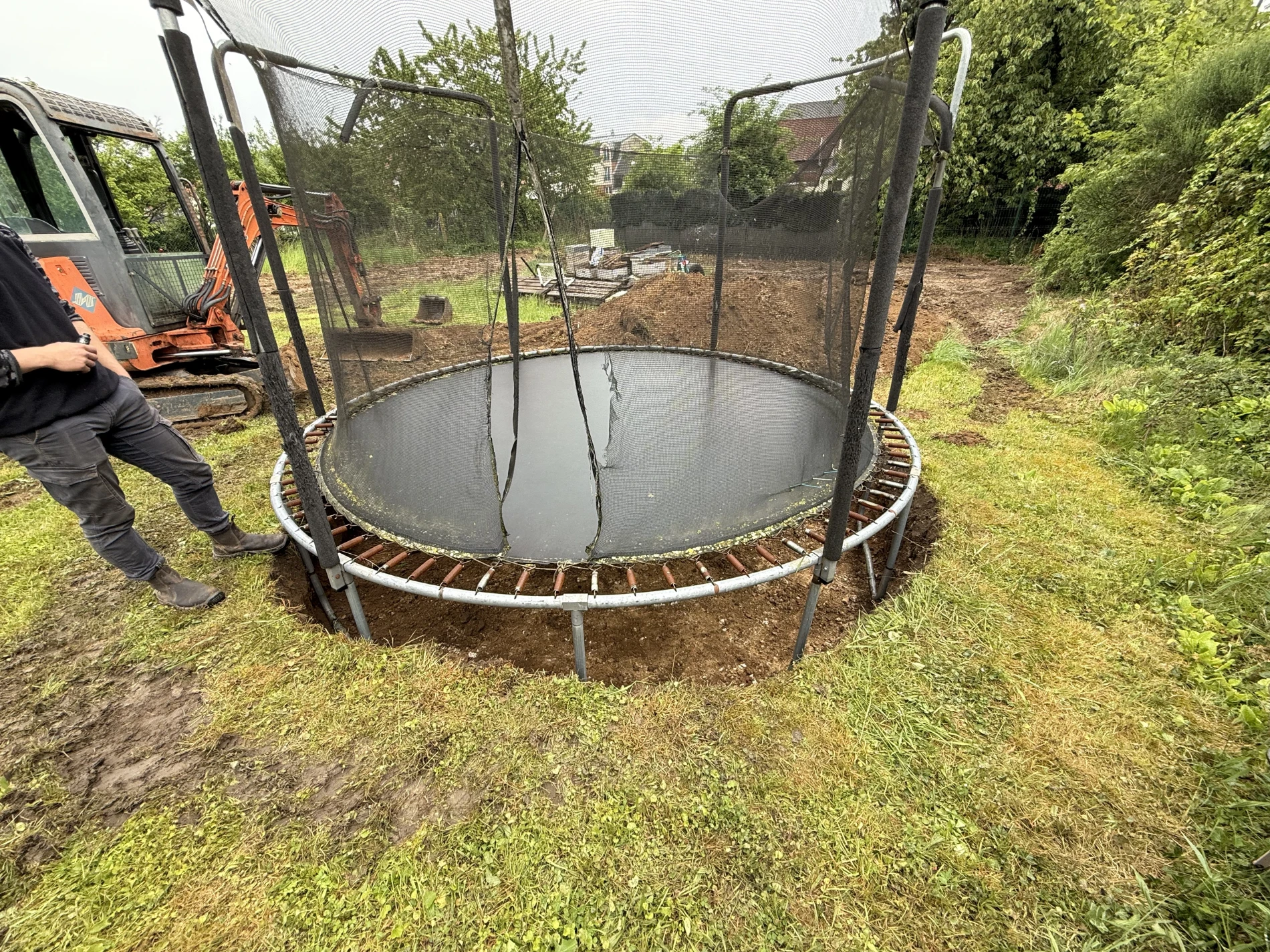 Dans un souci de sécurité pour les enfants, le trampoline a été intégré directement dans le sol.