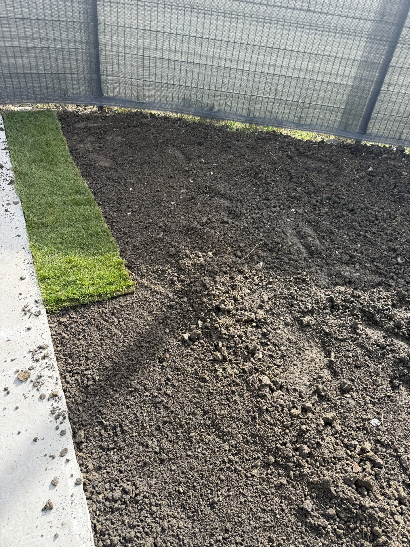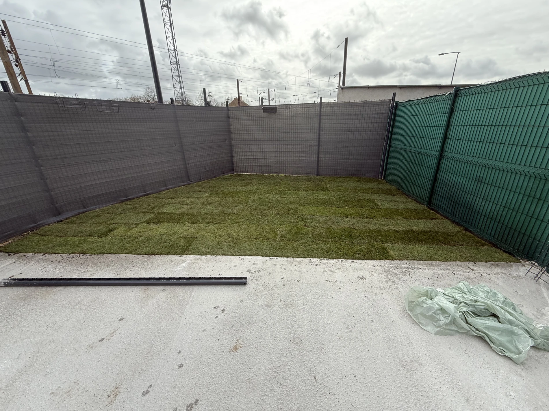 Une fois le terrain prêt, nous avons procédé à l’implantation du gazon en rouleaux, une solution idéale pour obtenir un résultat immédiat, dense et homogène.